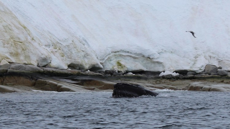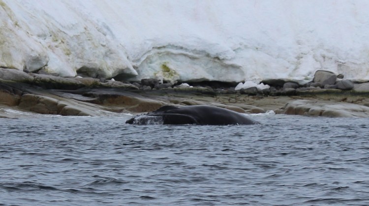 The whale team on my expedition were keen to not only identify individuals, which can be done by pattern-matching the undersides of the flukes (tail fins), but also to get skin, blow spray and faecal samples for their research (under special license). They used an underwater microphone to listen for the whales’ songs then cruised gently towards them. Getting samples was non-invasive and the whales were unperturbed by their presence.