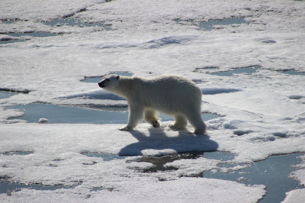 In the search for polar bears, our guides looked out for seals basking on ice, as polar bears can smell their prey from many kilometres away. Whenever we went on land, armed guards stood ready to warn us of any polar bears approaching so that we could hasten back to our ship. Polar bears are extremely dangerous to people, despite looking soft and cuddly.